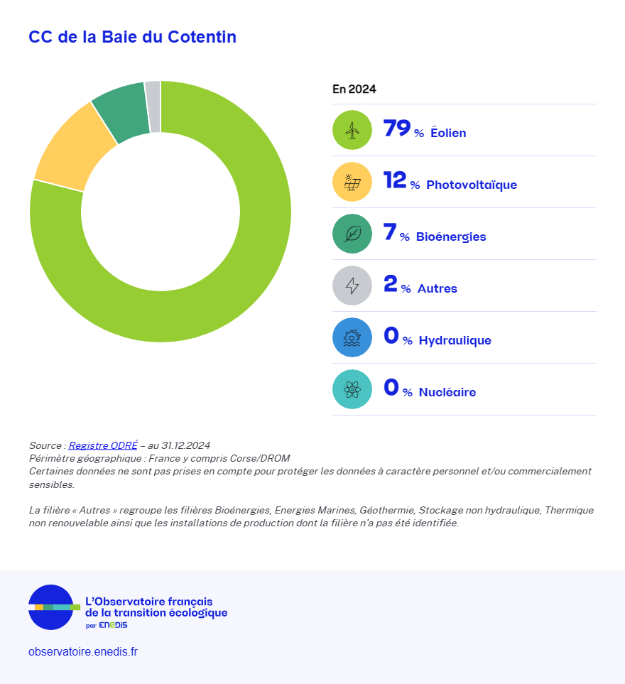 La Baie du Cotentin développe actuellement son Plan territorial pour le Climat, l’Air et l’Energie (PCAET). En attendant, vous trouverez les chiffres clés sur la transition écologique au sein de l’Observatoire régional Energie-Climat-Air de Normandie (ORECAN).