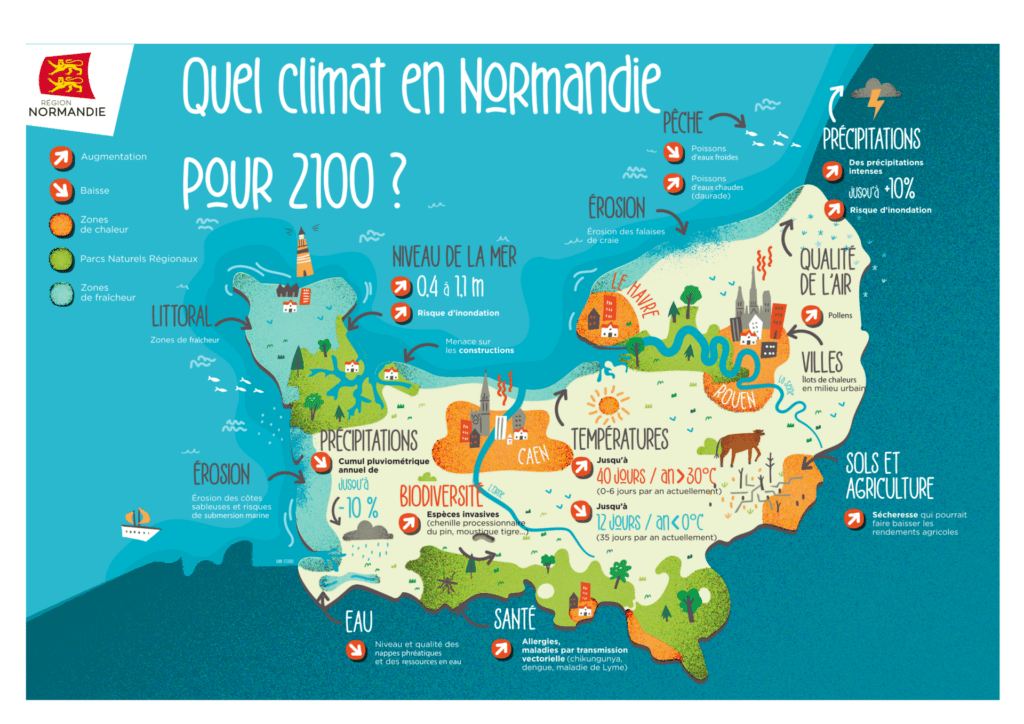 La Région Normandie a constitué un groupe de chercheuses et chercheurs issus des laboratoires de recherches régionaux et travaillant sur la question du changement climatique en Normandie. Ce groupe est nommé GIEC Normand, en référence au GIEC « international » (Groupe d’experts intergouvernemental sur l’évolution du climat).